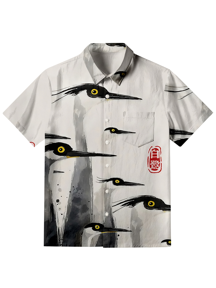 Pluslx Japanese Colorful Crane Button-up Shirt