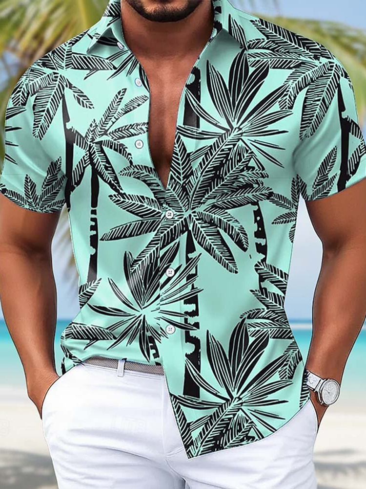 Pluslx Men's Palm Leaf Casual Shirt Summer Hawaiian Shirt