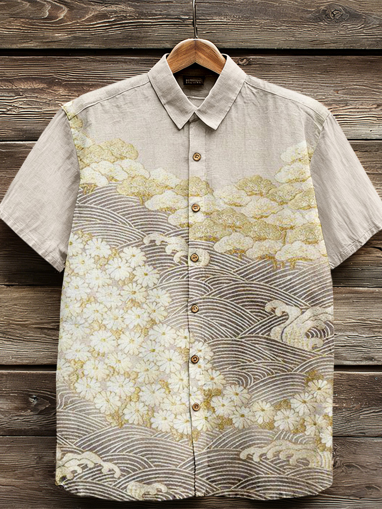 Pluslx Vintage Japanese Art Pattern Comfy Linen Shirt