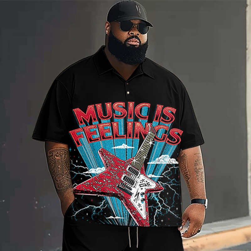 L-9XL Guitar Letter Pattern Short-sleeved Shorts Two-piece Set