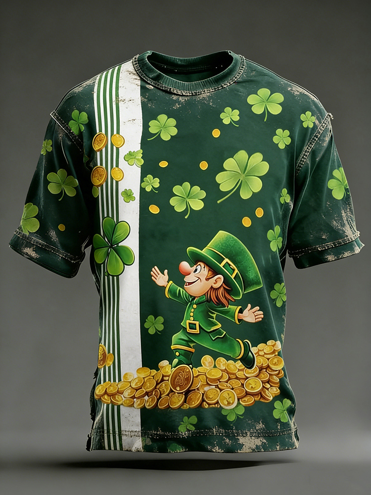 Pluslx Men's Vintage St. Patrick's Day Printed Short-sleeve T-shirt