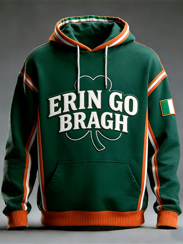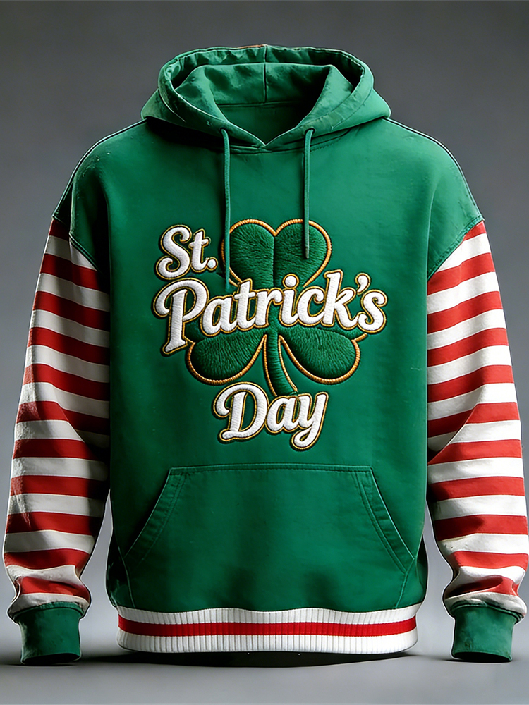 Pluslx Erin Go Bragh Clover Stripe Patchwork Men's Hooded Sweatshirt