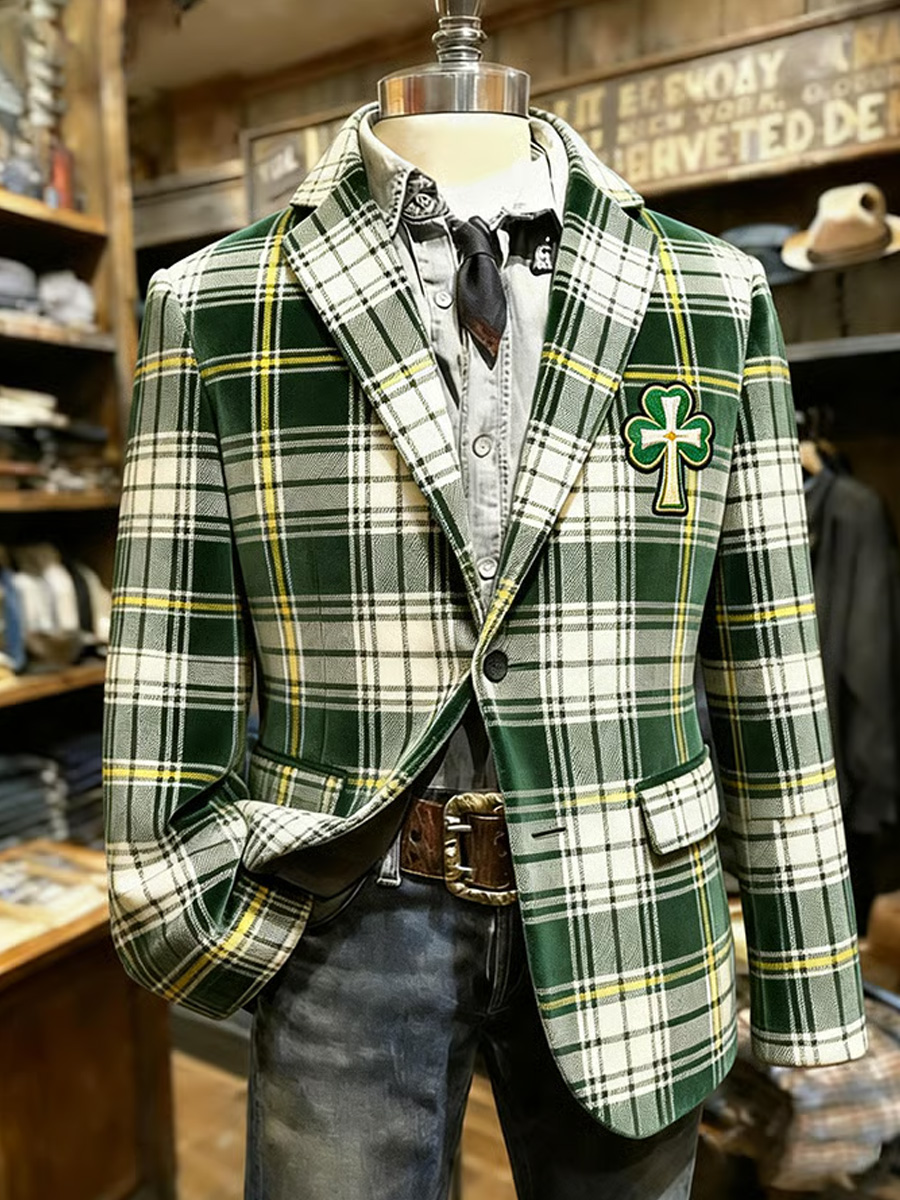 Pluslx Men's St. Patrick's Day Clover Faith Plaid Suit Jacket