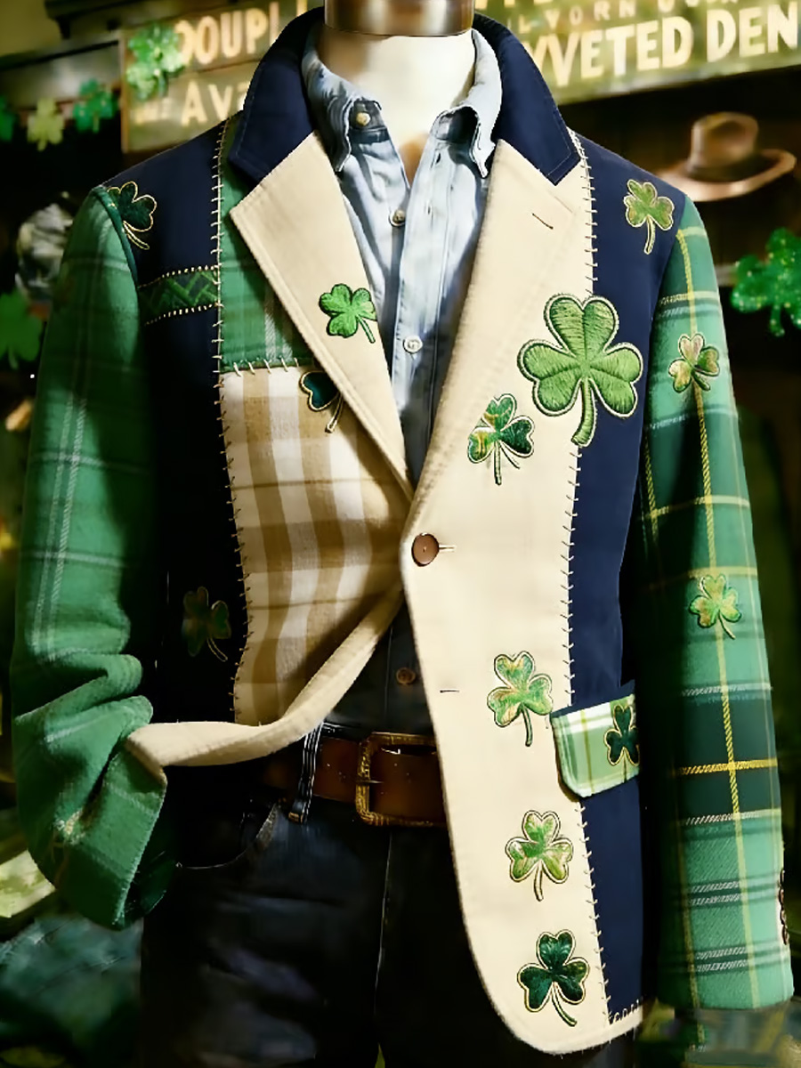 Pluslx Men's Retro St. Patrick's Day Print Casual Blazer