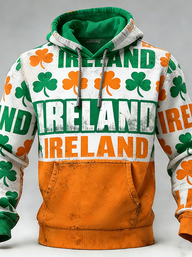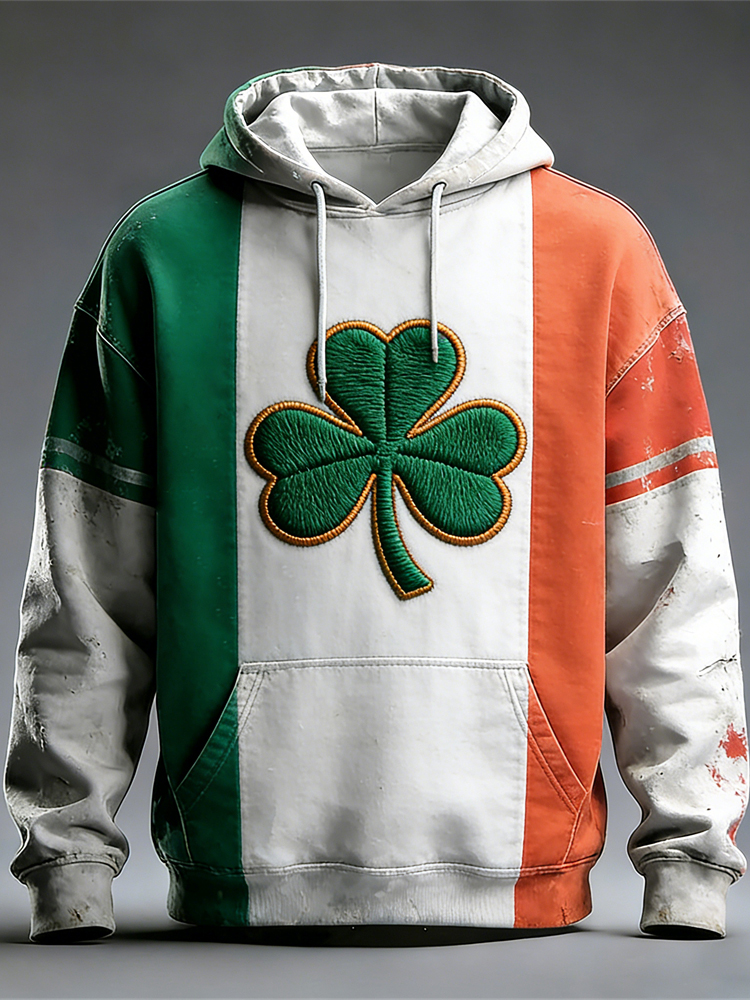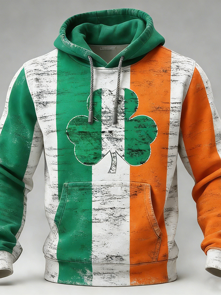Pluslx Irish Flag Color-blended Shamrock Pattern Casual Hoodie
