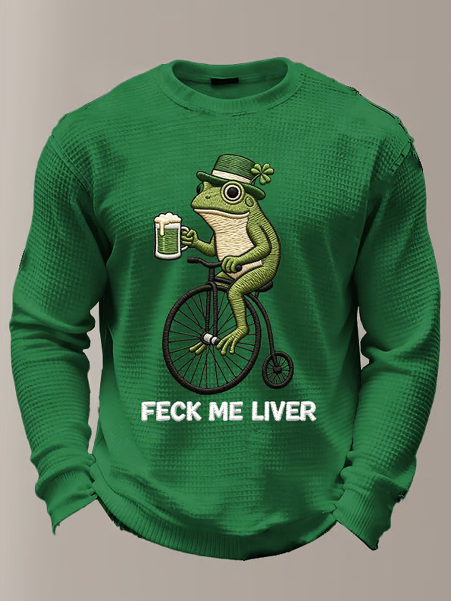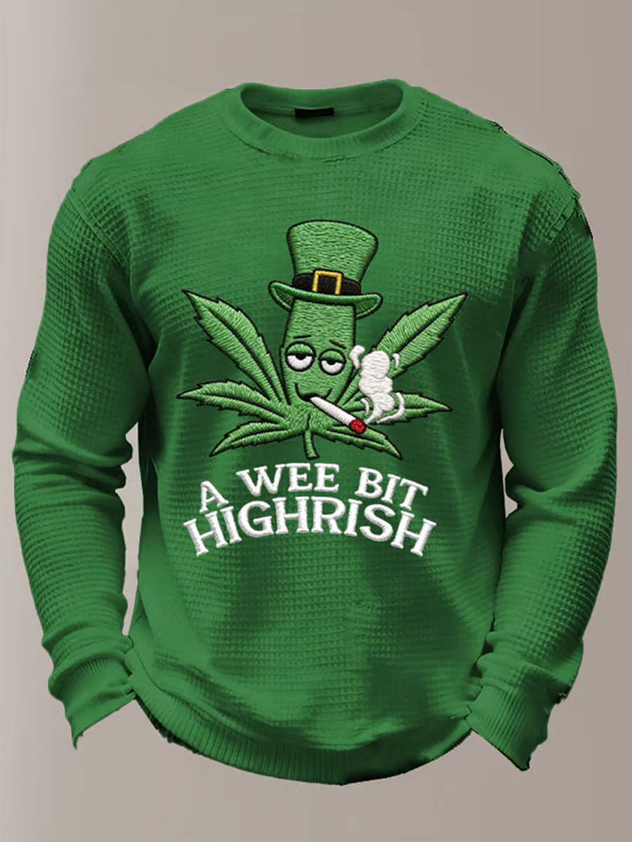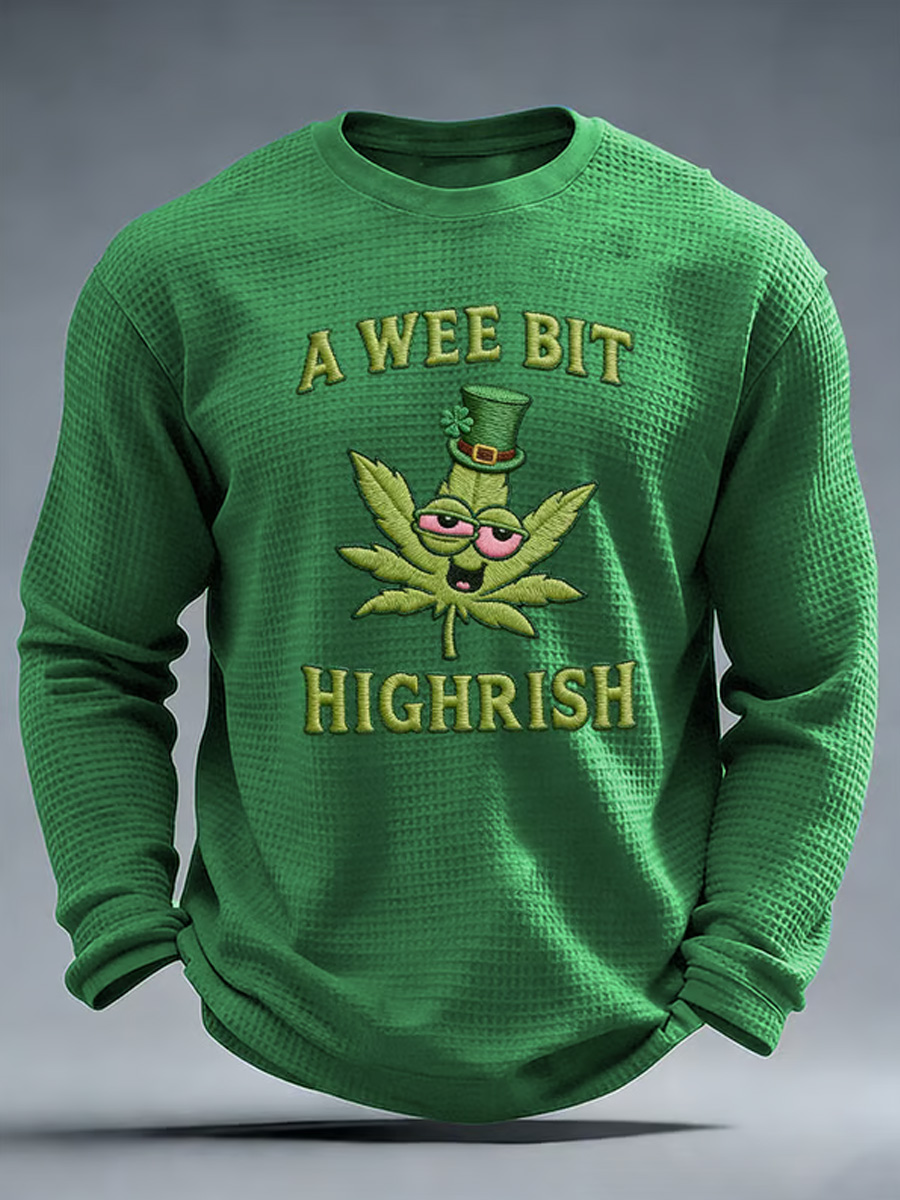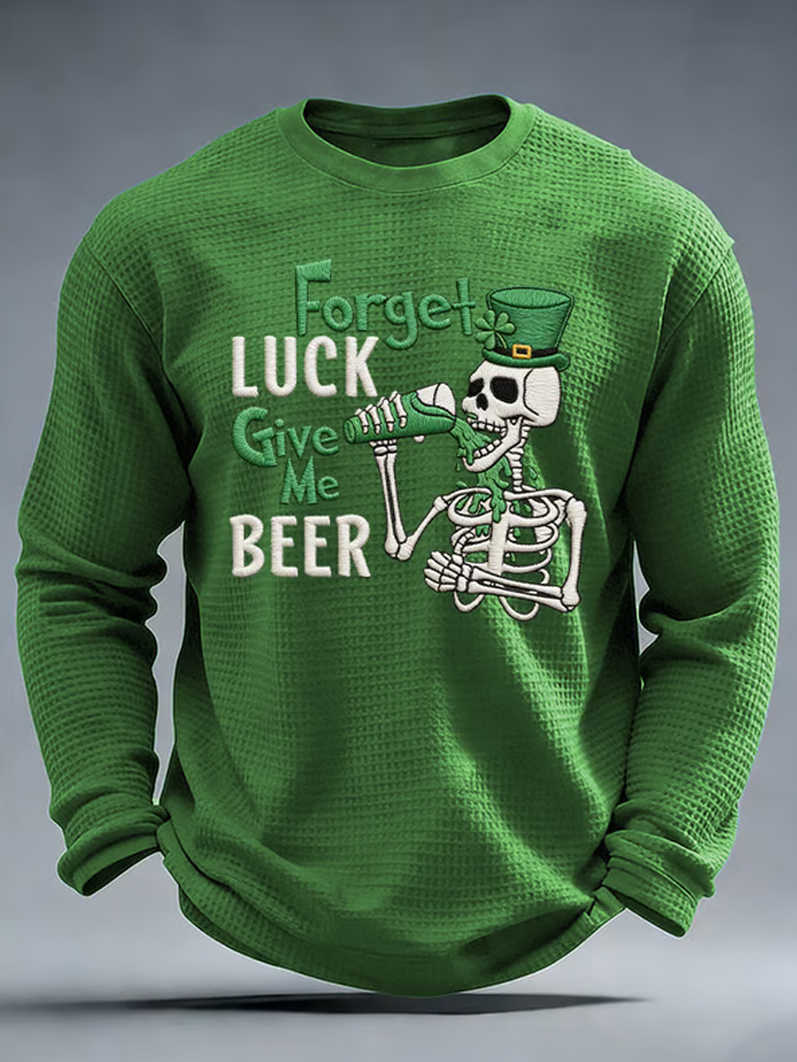 Pluslx Men's Casual St. Patrick's Day Waffle-knit Long-sleeved T-shirt