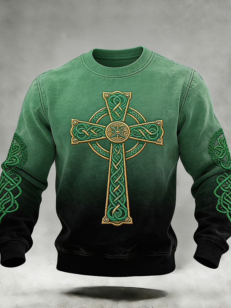 Pluslx Men's St. Patrick's Celtic Cross Gradient Cozy Sweatshirt