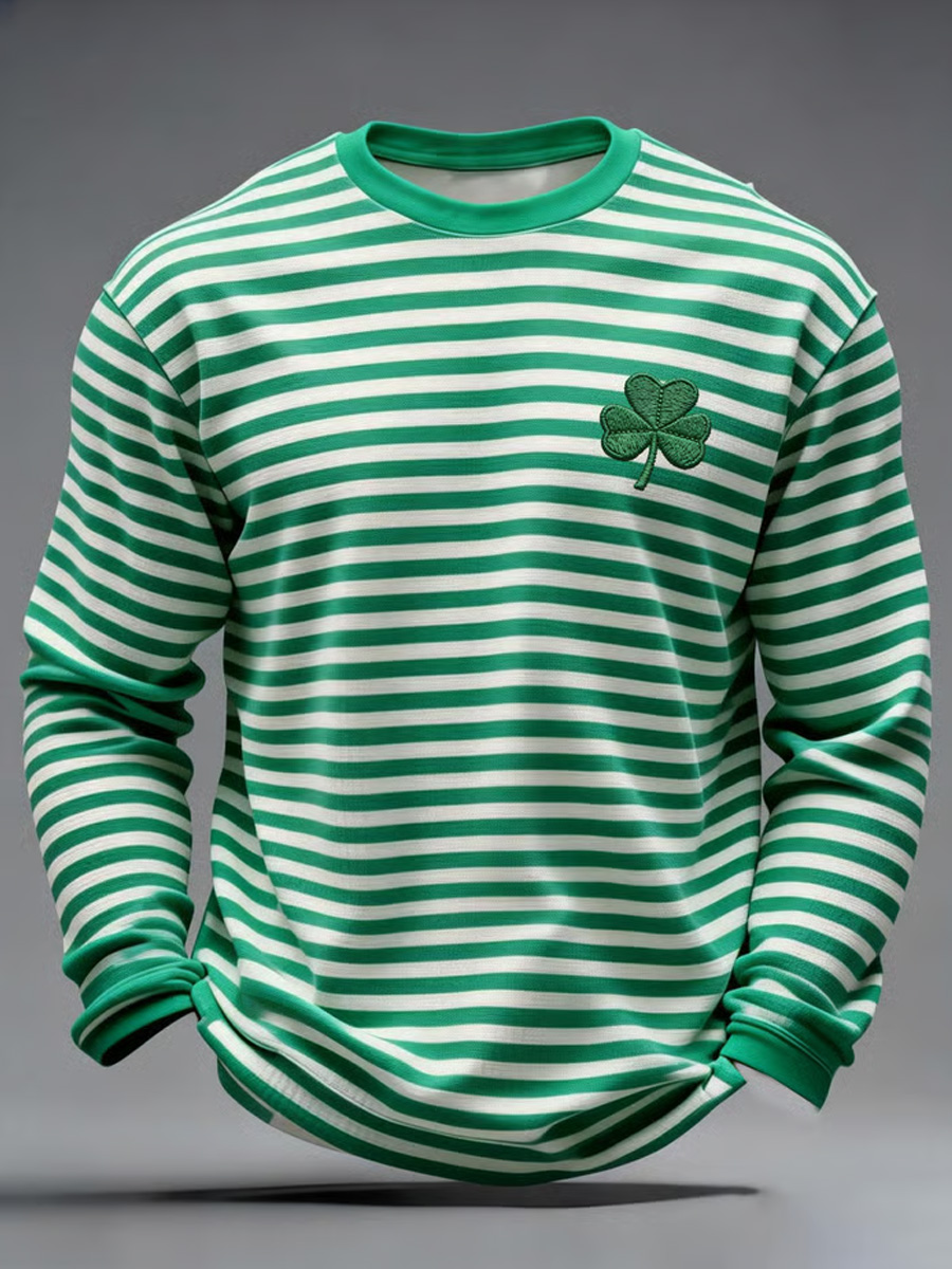 Pluslx Lucky Shamrock Pattern Round Neck Long Sleeve Casual T-shirt