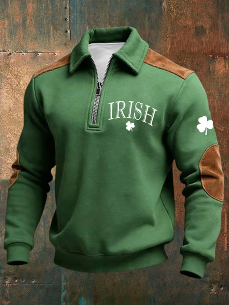Pluslx Men's St. Patrick's Day Printed Casual Zipper Sweatshirt