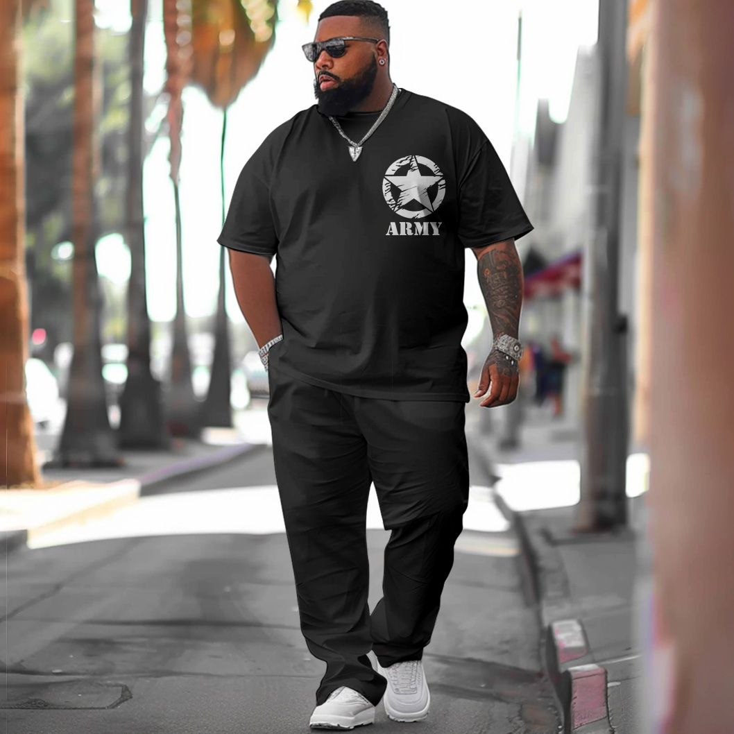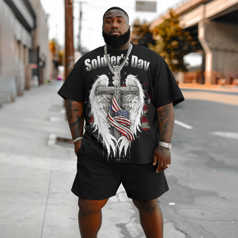 L-9XL Soldier’s Day Plus Size Short-sleeved Shirt And Shorts Two-piece Set