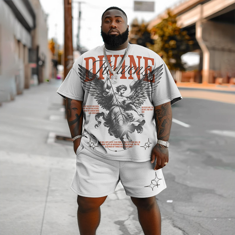 L-9XL Angel Blade Plus Size Short Sleeve And Shorts Two-piece Set