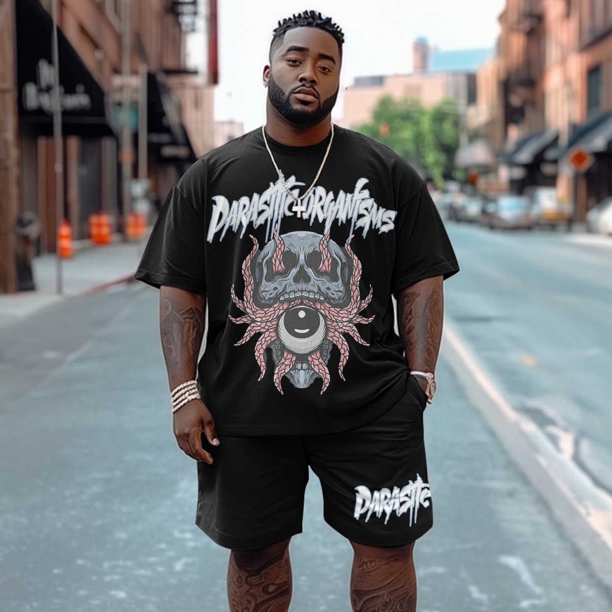 L-9XL Parasitic Organisms Short-sleeved Shorts Two-piece Set