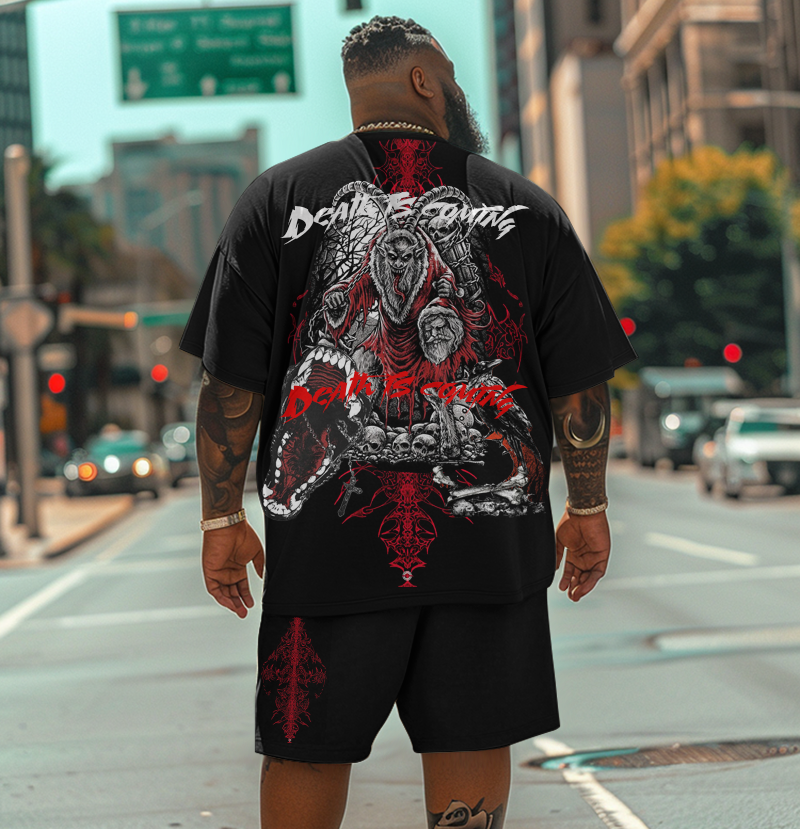 L-9XL Death Is Coming, Dark Style, Plus Size, Two-piece Short-sleeve Shorts