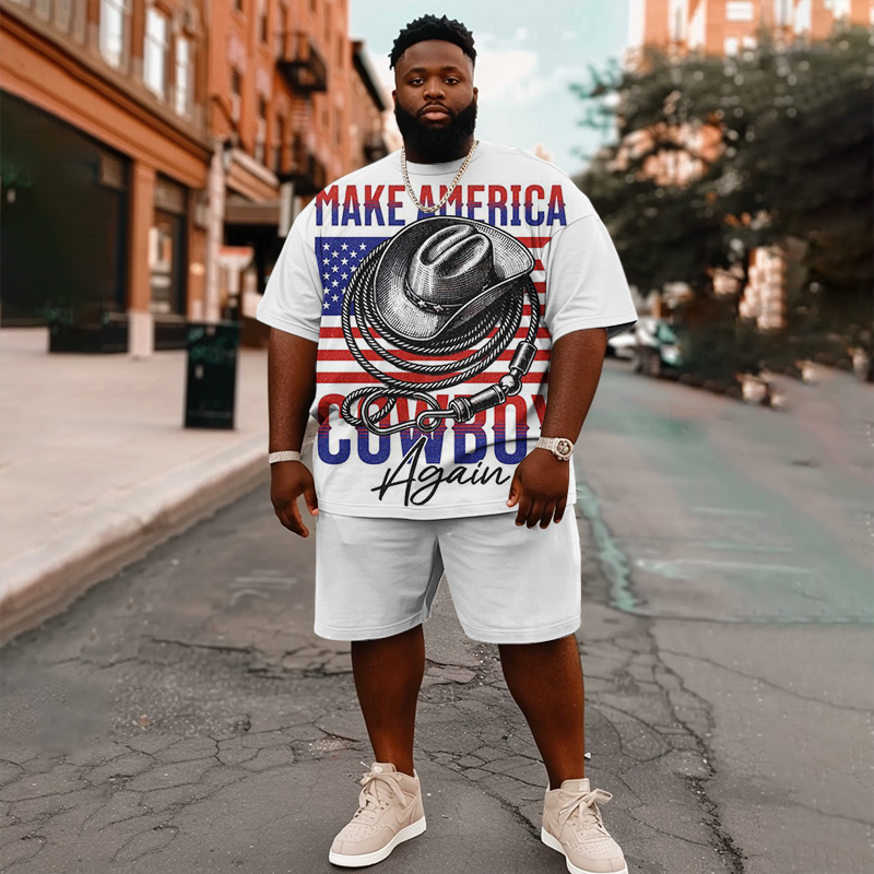 L-9XL Independence Day Short-sleeved Shorts Two-piece Set