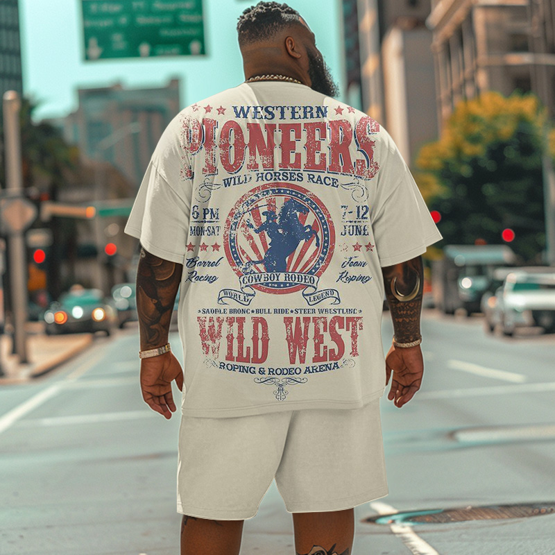 L-9XL Rodeo Plus Size Short Sleeved And Shorts Two-piece Set