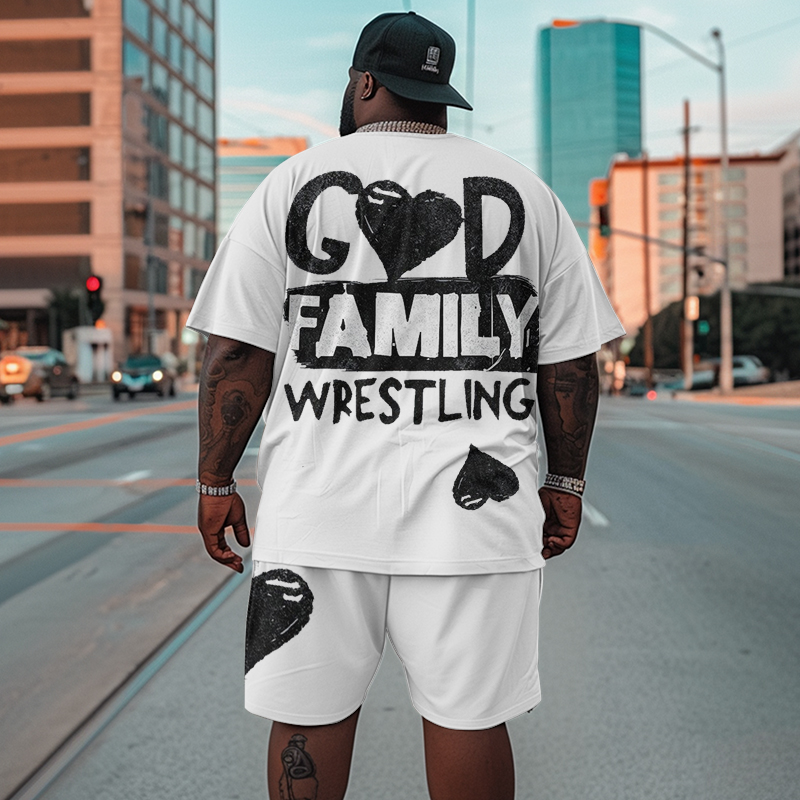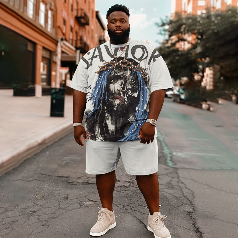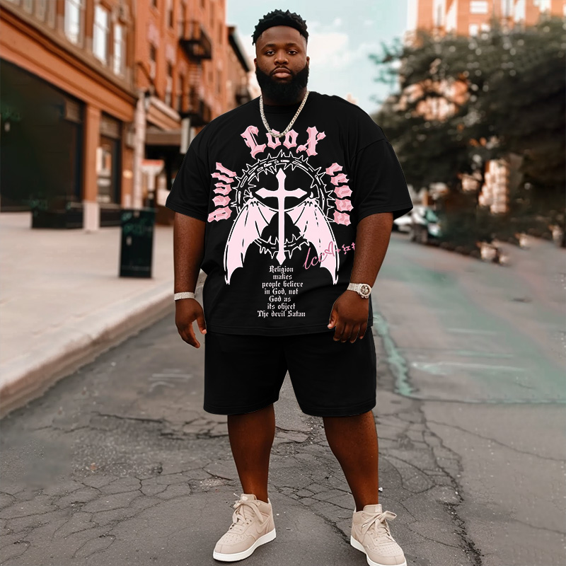L-9XL God Family Plus Size Short Sleeved And Shorts Two-piece Set