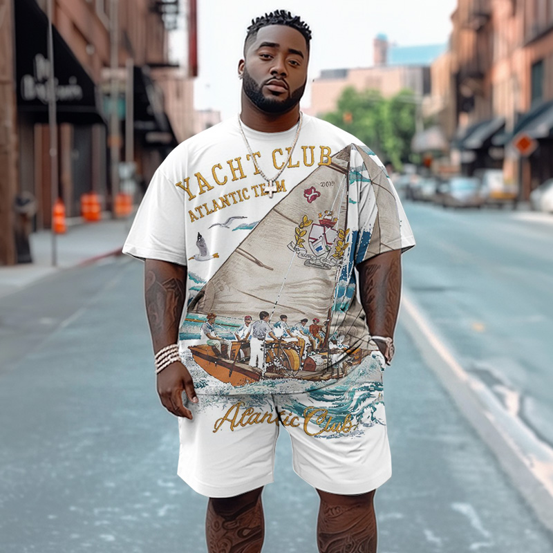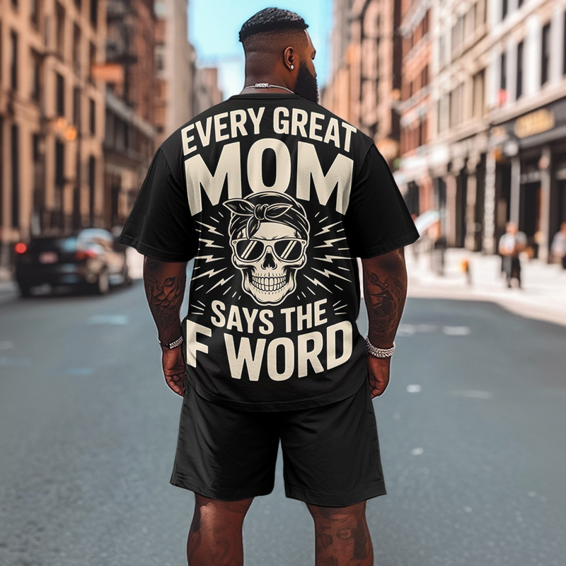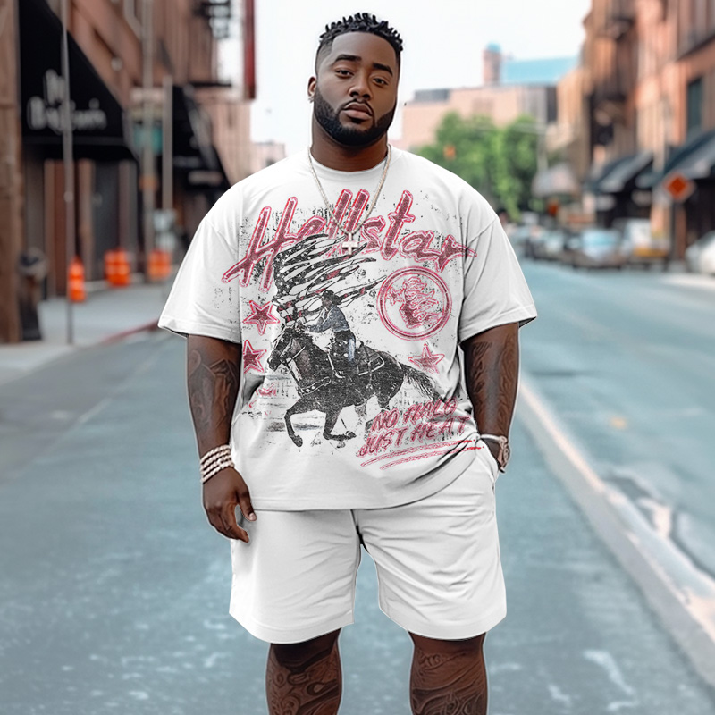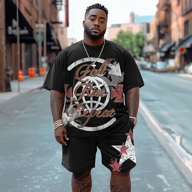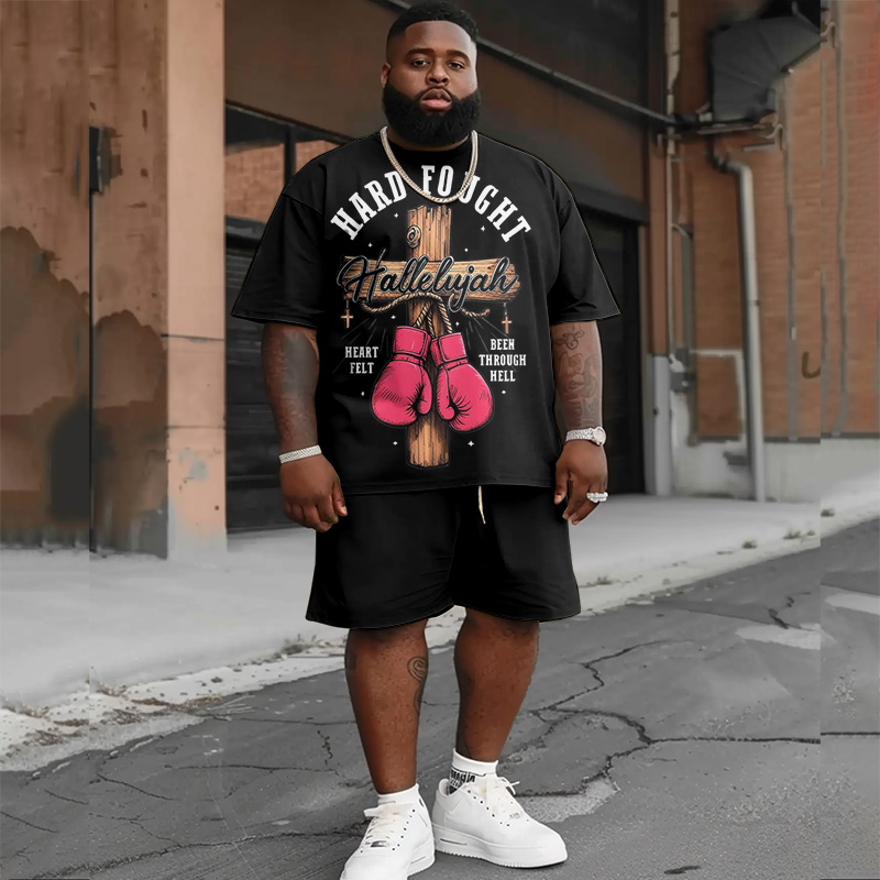 L-9XL Hard Fought Plus Size Trendy Short Sleeve Shorts Two-piece Set