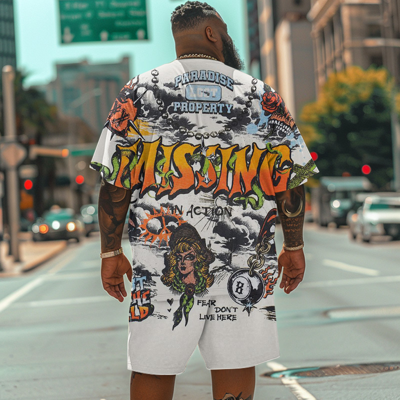 L-9XL Dust-covered Memories Short-sleeved Shorts Two-piece Set