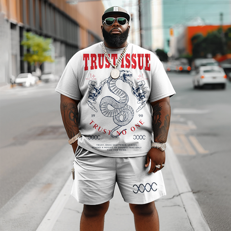 L-9XL Trust Issue Plus Size Short-sleeved Shirt And Shorts Two-piece Set
