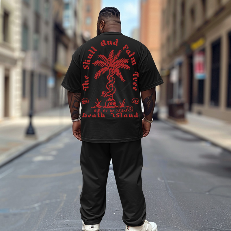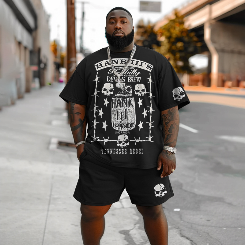 L-9XL Skull And Spike Street Print Short-sleeve Shorts Two-piece Set