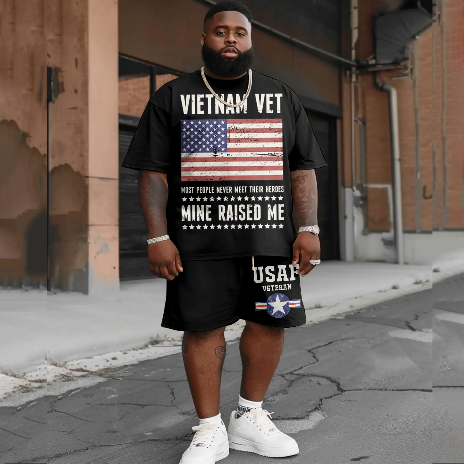 L-9XL Vietnam Vet Plus Size Short Sleeve And Shorts Two-piece Set