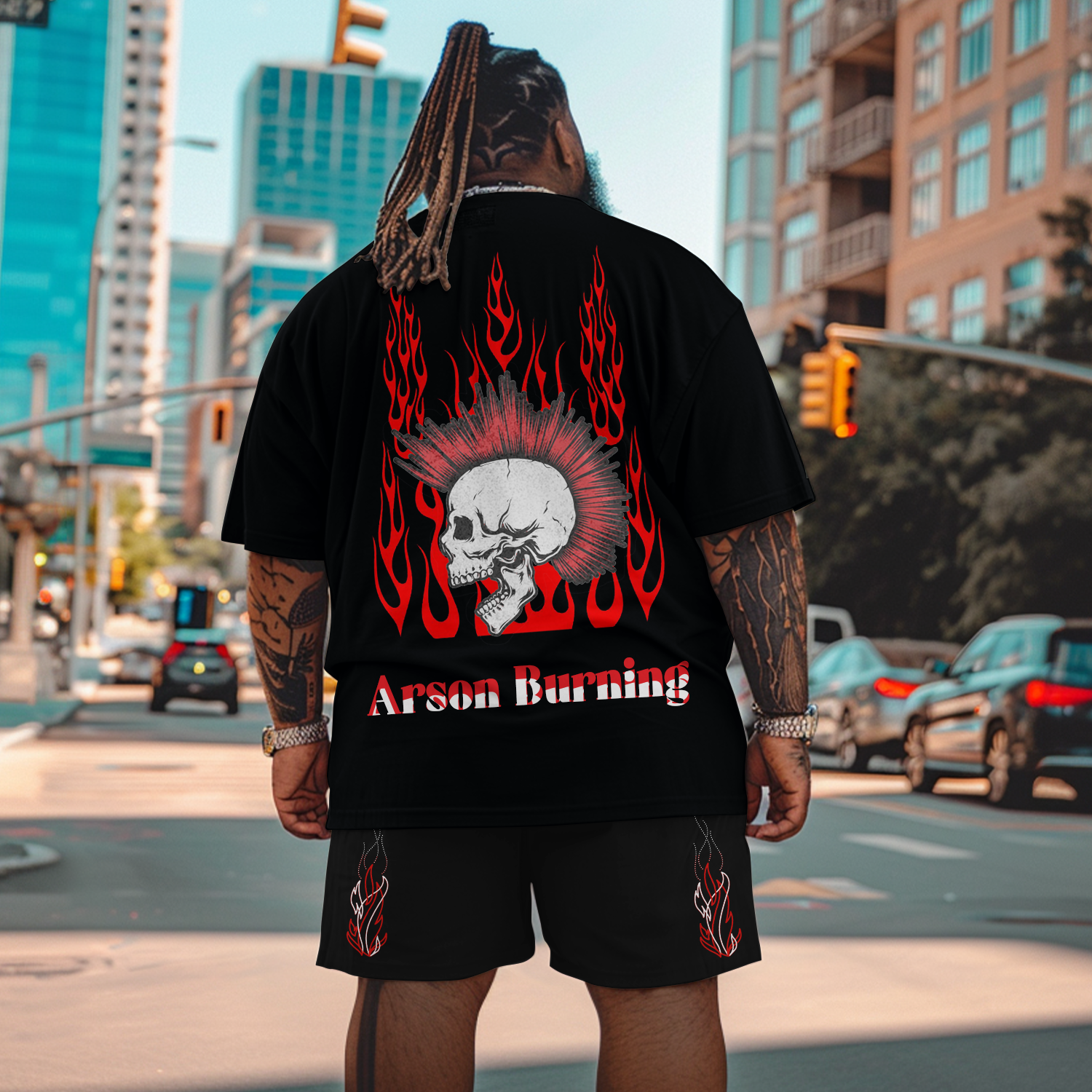 L-9XL Arson Burning Short-sleeved Shorts Two-piece Set