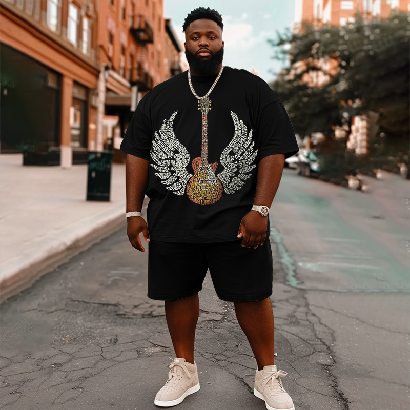L-9XL Guitar Letter Pattern Short-sleeved Shorts Two-piece Set