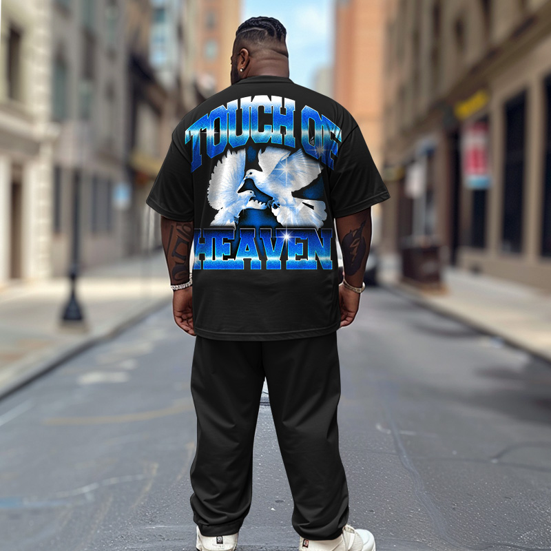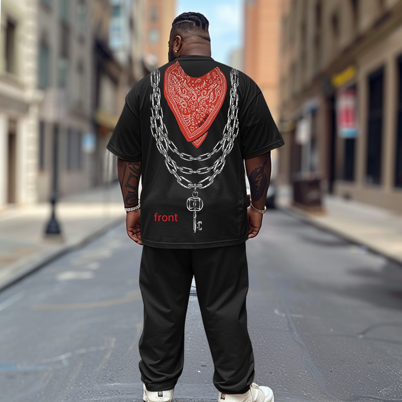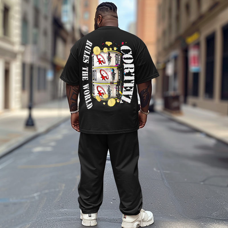 L-9XL Two-piece Set Of Large-sized Short-sleeve Shorts With Alien Element Color-blocking Print