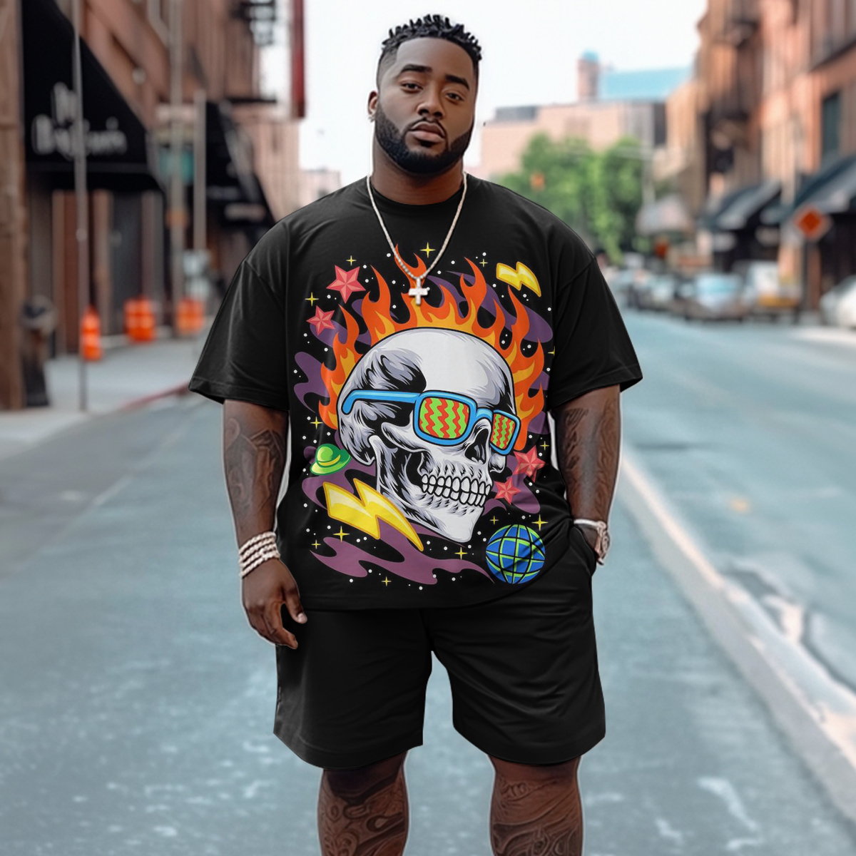 L-9XL Alien Invasion Elements Plus Size Short-sleeve Shorts Two-piece Set