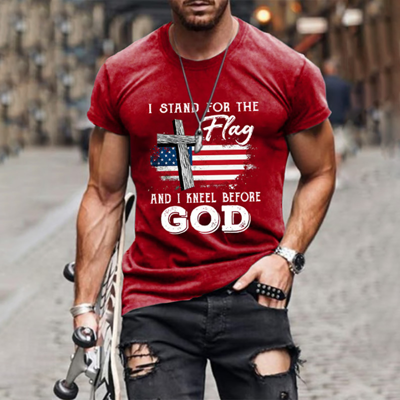Pluslx Men's Casual Christian Faith American Flag Graphic Print Short Sleeve T-shirt